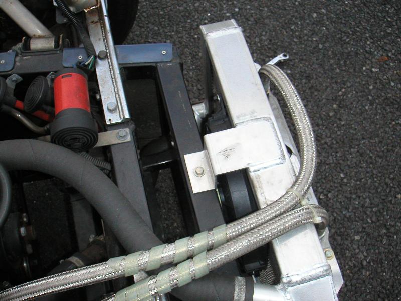 私のタイガーは放熱性が悪いのか、油温がすぐに110度近くまで上昇するので、ラジエーターを交換することにしました。そこで取り付けたのがアルミラジエーター。容量自体は半分ほどになりましたが、冷却効果はかなりのもの。ちょっと走行するだけでみるみる温度が下がっていくようになりました。停車してしまうと、急上昇しますけど・・・(ファンをまわせば85度付近で安定します)。まぁ、これで多少心配事が減りました(^^) 今までのブレーキスイッチは油圧式だったため、かなり踏み込まないとランプが点灯しませんでした。そう、ちょうどタイヤがロックするくらいまで踏み込んで始めて点灯するような状態 (^^;; これでは危ないので機械式に変更。今ではブレーキが効き始めるくらいの時に点灯するので丁度良い感じです。 私はタイガーを青空駐車しているため、盗難が心配&乗り込む際に邪魔ということでステアリングの脱着機構を取り付けることにしました。アメリカの盗難防止用のグッズで、キーによりロックします。防犯性能はとても高く、ステアリングを付け替えようと思ったらシャフトごと交換しないと駄目です。 |