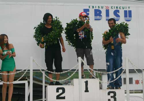 表彰台頂点のザクラ。あれ?みんなシャンパン撒き終わってるよ?