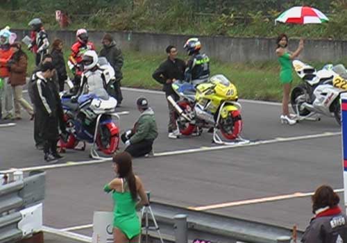 スタート直前。ポールにだけレースクイーンが付く・・・・けっ